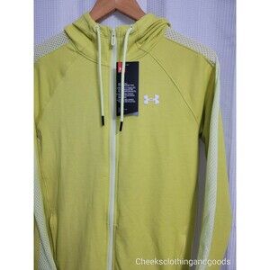 This is a NWT Under Armour Lime Green Featherweight Fleece Full Zip Jacket Women's size MEDIUM. There are no stains, snags, or holes.