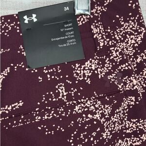 NWT Under Armour Golf Printed Burgundy Shorts Mens Size 34 (1377303-600)