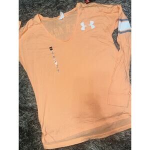 Elevate your activewear game with this NWT Under Armour HeatGear women's fitted long sleeve top in a beautiful peach orange color. Designed for women, this classic fit top is perfect for any occasion, whether you're hitting the gym or going for a run. Made with high-quality materials, this top is sure to keep you comfortable and stylish.