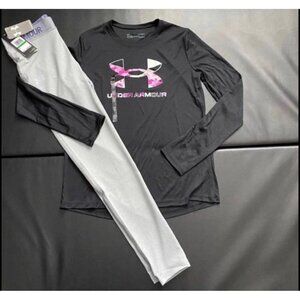 NWT Under Armour Leggings & Long Sleeve Tee Set Girls Youth Size Medium