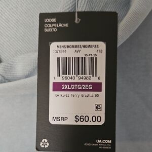 NWT! Under Armour Light Blue 2X Hoodie