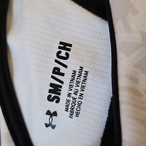 NWT Under Armour Graffiti Sports Bra, black and gray and red. trimmed in black.