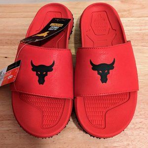 New With Tags! Under Armour Project Rock Men's Sideline Slides Size 8 Red/Black Sandals