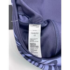 Brand new with tags! This Under Armour UA Crossback Mid sports bra in size 1X offers medium support and features a stylish navy and purple swirl print.