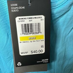 Bright blue and super cute! Women’s loose fit UA tank, size M.