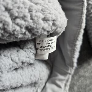 This Under Armour Women’s Mockneck Sherpa Fleece Sweatshirt is new with tags and in size Large. Made of polyester fleece material, this pullover sweatshirt features a solid gray color with a mock neck and raglan sleeves for added style. With a regular fit, this sweatshirt is machine washable and suitable for various activities such as gym training, walking, and running. The classic pullover style, along with the USA and outdoor themes, makes it a versatile addition to any woman's wardrobe.