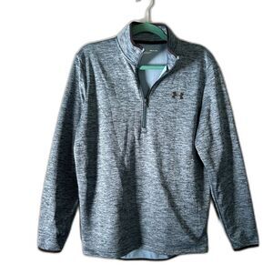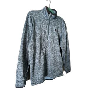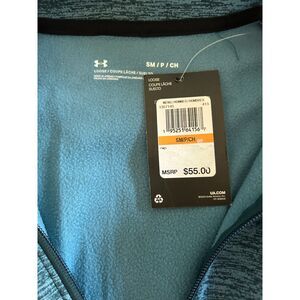 NWT Under Armour loose 1/4 zip men's green pullover running jacket size small with black piping trim. Material poly. Measures 21" across chest, 19" armpit to cuff, 27" front length, 28" back length.