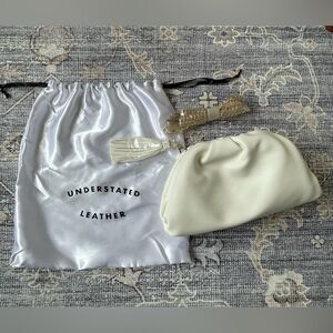 NWT Understated Leather crescent clutch with gold tone chain strap