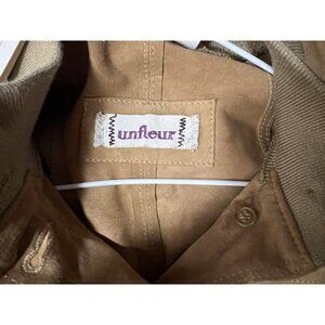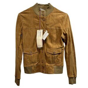 NWT Unfleur Farfetch Suede Bomber Jacket Chest Tan Button Front 40 S Quiet Lux