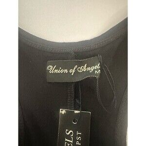 Elevate your wardrobe with this stunning NWT Union Of Angels black hi-lo dress. The dress features a scoop neckline and racerback design, with a beautiful scallop ruffle hem that adds a touch of elegance and femininity. The dress is made of 95% cotton and 5% spandex, making it lightweight and comfortable to wear, perfect for summer and spring.