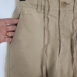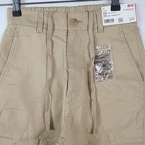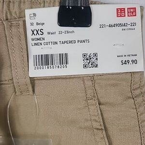 NWT Uniqlo Women's Linen Cotton Tapered Pants High Rise Beige Sz XXS