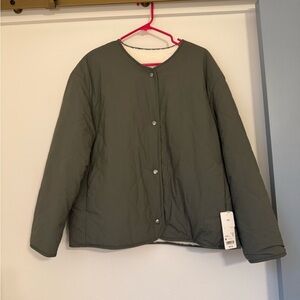 NWT Uniqlo Women’s Pile Lined Fleece Quilted Reversible Jacket Olive Green- M