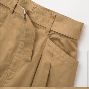 NWT Uniqlo women’s cotton twill belted skirt tan midi cargo style skirt …