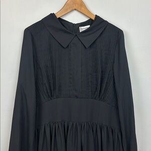 Gorgeous black Pintuck long sleeve collared dress. 1940’s style. Gothic, mourning, witchy, dark, spooky, dark romantic. Lydia Deetz, Beetlejuice