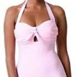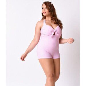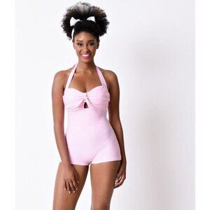 NWT Unique Vintage Garbo Pink Gingham One-Piece Retro Halter Swimsuit, size XL. No longer in production, hard to find!
