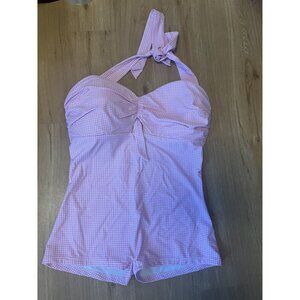 NWT Unique Vintage RARE Pink Gingham One-Piece Retro Halter Swimsuit XL