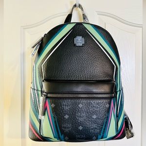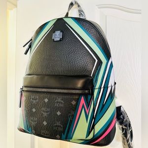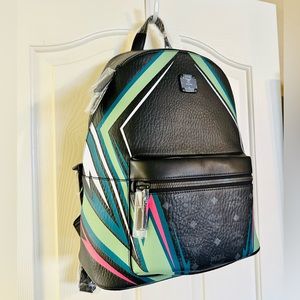 NWT! Unisex MCM Medium Leather & Canvas Stark Graphic-Print Backpack