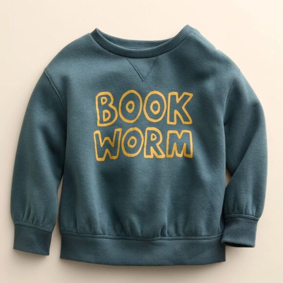 NWT!! Unisex Sz NB"Book Worm"Crewneck Sweatshirt (LW) Organic Cotton Green/Blue