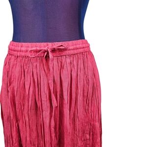 Features hot pink and white tie dye peasant maxi skirt, elastic waistband with drawstring tie, crinkle boho chic fabric, Stevie Nicks aesthetic, maxi skirt, lightweight and flowy, Unity Plus free size, hippie, bohemian, festival.