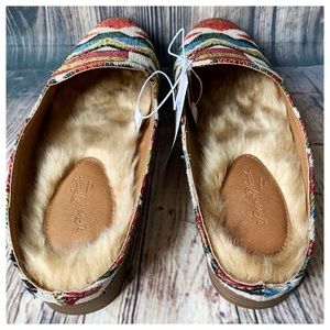 Super cute NWT universal Thread slip on flats with cozy faux fur inside. Outer canvas material with beautiful multi colored design, short heel measuring a little under 1 inch. I have Various sizes available. Get yours today!!