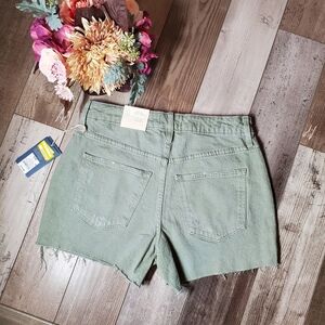 NWT Universal Thread Dusty Olive Green Vintage Stretch Midi Denim Jean Shorts