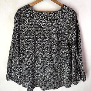 Beautiful boho floral blouse with a 3 button v neck and a flowy fit