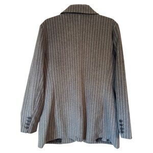 Elevate your wardrobe with this sophisticated gray pinstripe blazer. Perfect for both professional and casual settings, it offers a timeless style and comfortable fit.