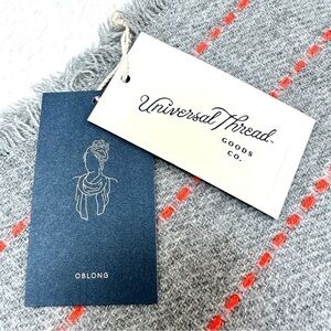 NWT Universal Thread Grey Oblong Scarf with Coral Colored Stripe