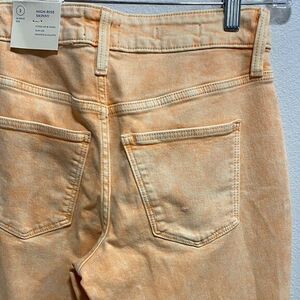 NWT high rise skinny jeans in a unique light orange acid wash. Stretch denim for a flattering, comfortable fit with a modern faded look.