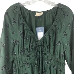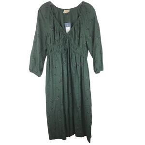 NWT Universal Thread Midi Dress 3/4 Puff Sleeve Empire Waist Ties Green Floral M