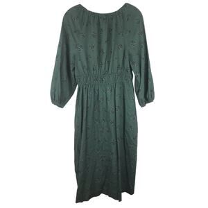New With Tags Universal Thread Midi Dress 3/4 Puff Sleeve Empire Waist Ties Green Floral Size Medium