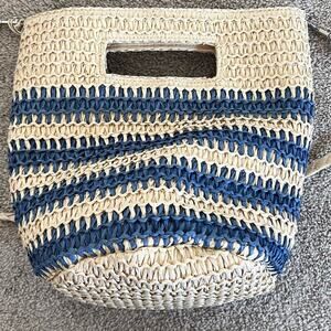 NWT Universal Thread Straw Purse Adjustable Over the Shoulder Strap Cream/Blue