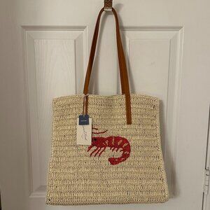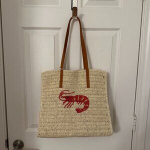 Brand new with tags! Woven straw packable tote from Universal Thread, featuring a bold red shrimp embroidered on the front. Designed with faux leather shoulder straps and a roomy, unlined interior—perfect for beach trips, farmers markets, picnics, or casual everyday use.