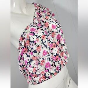 NWT Universal Thread Sz L Womens One-Shoulder Floral Puff Sleeve Crop Top Pink