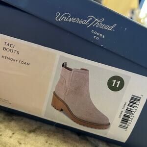 Brand new with tags, these Universal Thread Taci Memory Foam Suede Boots in size 11 combine comfort and everyday style. Crafted from soft faux suede with a side stretch for easy wear, these ankle boots feature a cushioned memory foam insole that provides all-day comfort and support.