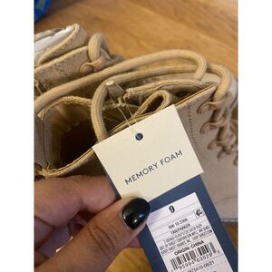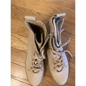 NWT Universal Thread women's Beige Canvas Lace-Up Ankle Boots With Side Zipper 9