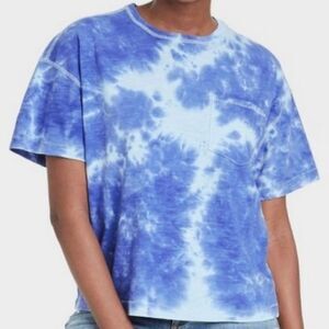 In a blue tie-dye hue, this women's pullover pocket tee is cut in a cropped silhouette with a relaxed fit, and has a classic crewneck and short sleeves for easy wear. Made from 100% cotton, this basic and boxy top lets you breeze through the day in absolute comfort, and is great for wearing on its own during sunny days and layering for warmer wear on breezy days.