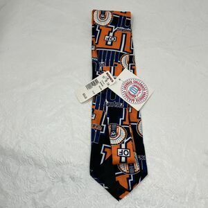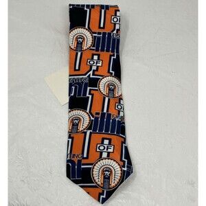 NWT University Of Illinois Fighting Illini Chief Silk Tie UIUC Orange Blue VTG