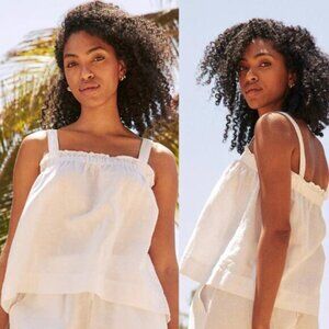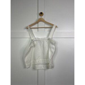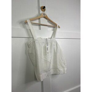 NWT Unsubscribed Sleeveless Smocked Ruffle Neck Linen Tank White Size: Medium