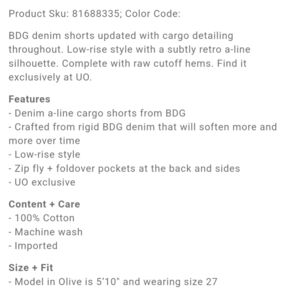 NWT Urban Outfitters BDG Aline Denim Cargo Short 27