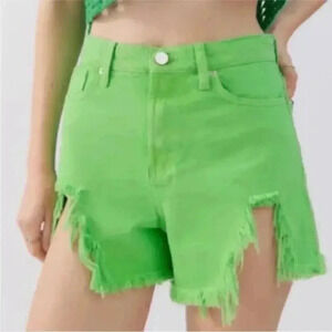 NWT Urban Outfitters BDG A-line Shorts Bright Green Denim Chewed Hem Sz 26