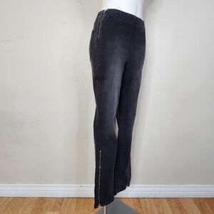 Measures 31 1/2" inseam, 15" across the waist, 17" across the hips, 10" rise in front and 11 1/2" in back.
