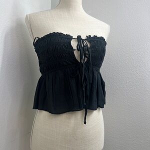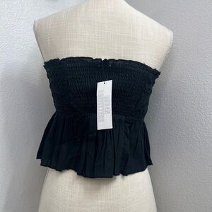 NWT Urban Outfitters Black Smocked Strapless Tube Top Peplum Crop | Size Small