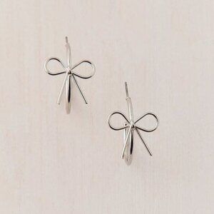 Thin hoop earrings topped with a tonal bow.