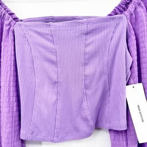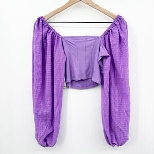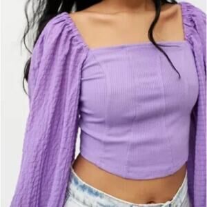 NWT Urban Outfitters Claudia Puff Sleeve Cropped Corset Top in Purple Size M