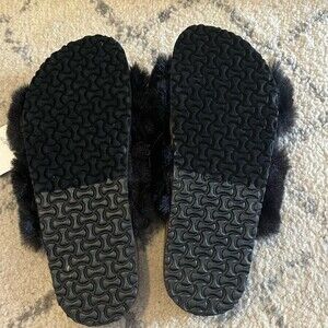 NWT Urban Outfitters Criss Crossed Black Faux Fur Slide Sandals 7