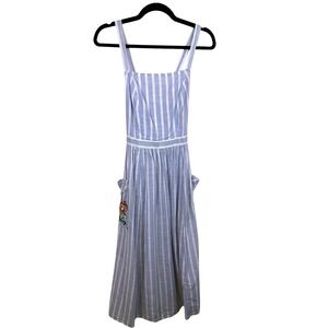 NWT Urban Outfitters Dress Small Midi 100% Cotton Stripe Boho Coastal Blue White