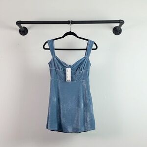 NWT Urban Outfitters Genevieve Corseted Velvet Mini Dress In Blue