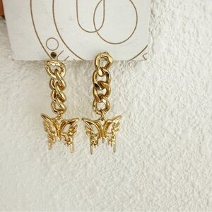 NWT Urban Outfitters Gold Chain Butterfly Earrings