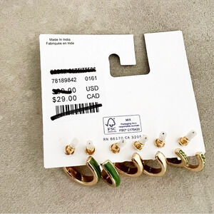 NWT Urban Outfitters Gold Half Hoops With Green Embellishments